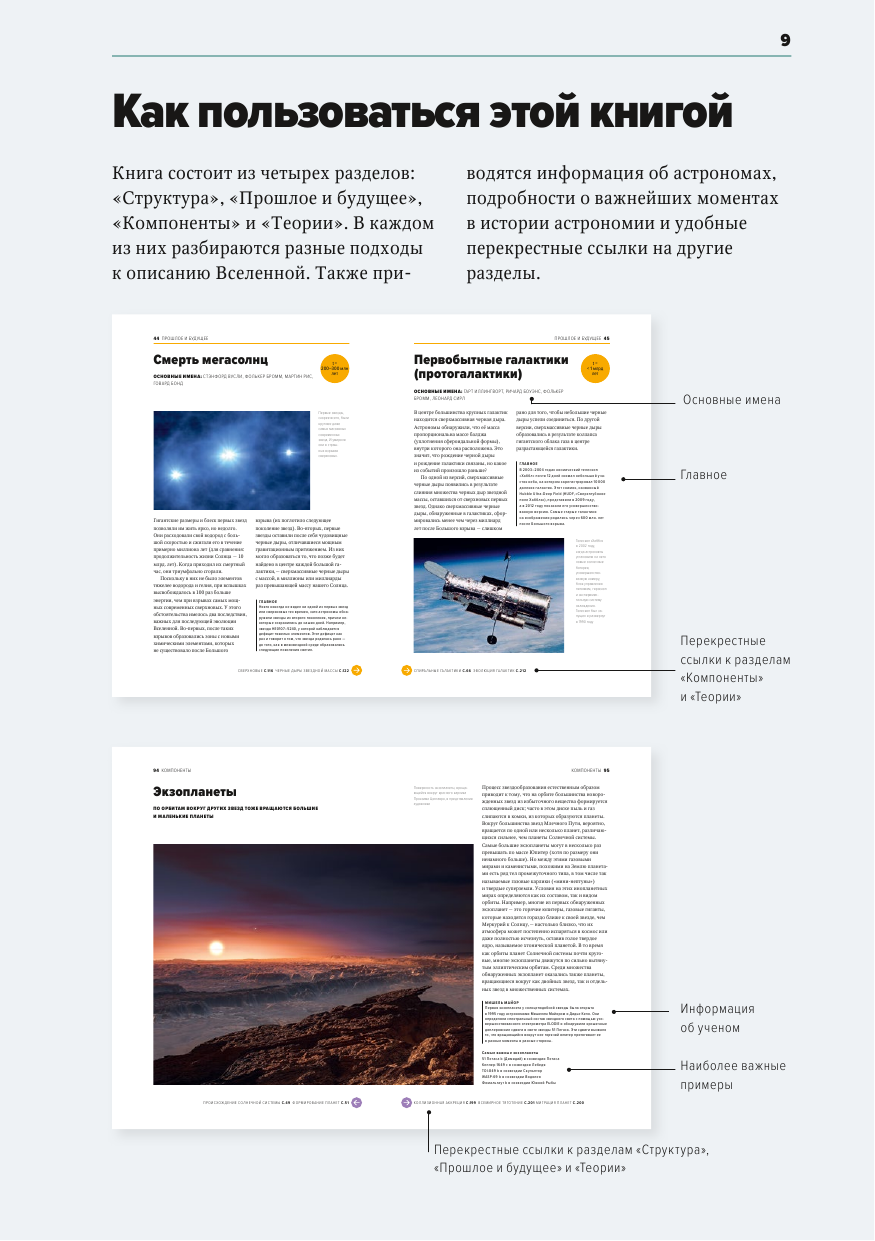 Особый серийный формат книги — с перекрестными ссылками, пояснениями и ключевыми определениями — позволяет разобраться в сложных понятиях из области теоретической физики и астрофизики, подчеркнуть значимость каждого из научных открытий и теорий.