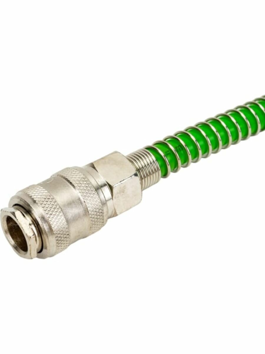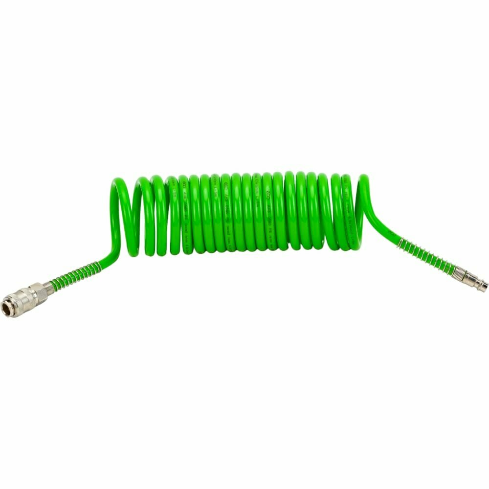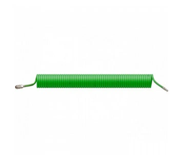 Шланг полиэтиленовый спиральный 6.5/10 мм, 5 м ECO оснащен быстросъемными соединителями и применяется для соединения пневматического инструмента с компрессорами и линиями подачи сжатого воздуха. Преимущества Благодаря спиральной форме шланг способен растягиваться и сжиматься по принципу пружины, что предотвращает его запутывание и переламывание Соединение быстросъемное ПАПА / Соединение быстросъемное МАМА