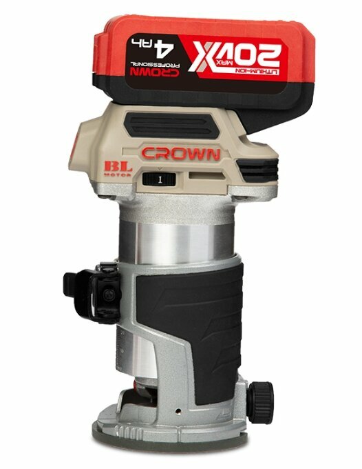 Фрезер кромочный CROWN CT26010HX применяется для выборки пазов под карты петель и замков, а также для обработки кромок. Входит в линейку электроинструментов B3 Plus под аккумулятор одного типа.Преимущества Функция плавного пуска для равномерного набора скорости при включении инструмента Бесщеточный двигатель обеспечивает высокую производительность работ Дисковый регулятор числа оборотов позволяет выбрать нужную скорость в зависимости от типа выполняемых задач Инструмент поддерживает заданное число оборотов как на холостом ходу, так и под нагрузкой Возможность регулировки глубины строгания от нуля до максимального значения Функция блокировки шпинделя для легкой замены оснастки Подсветка для комфортной работы в плохо освещенных местах Резиновые накладки обеспечивают надежный хват