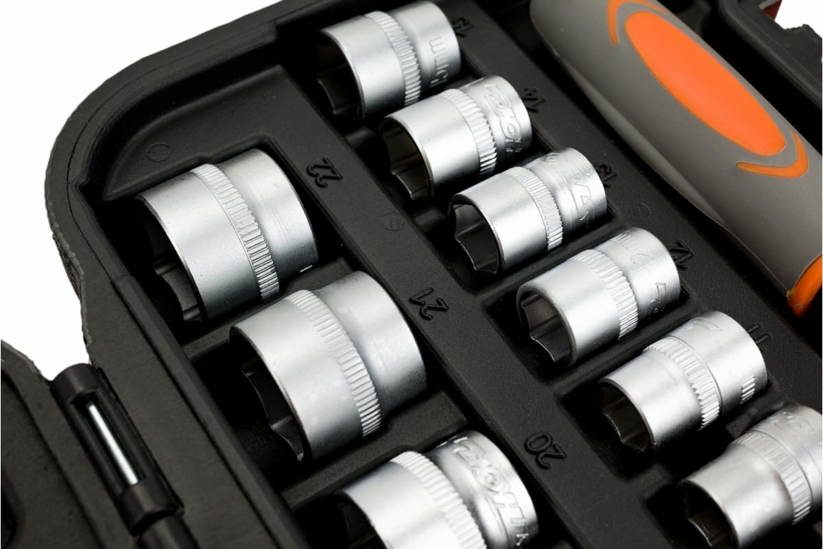 | Комплектация | торцевые головки; трещотка; Т-образный вороток; удлинители; карданный шарнир |