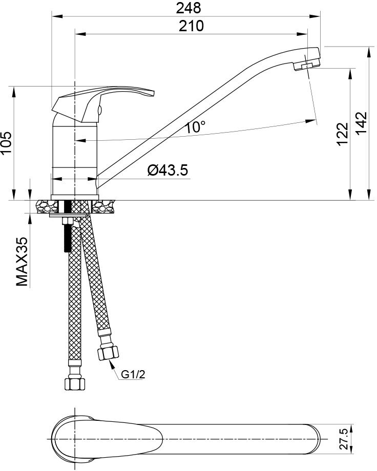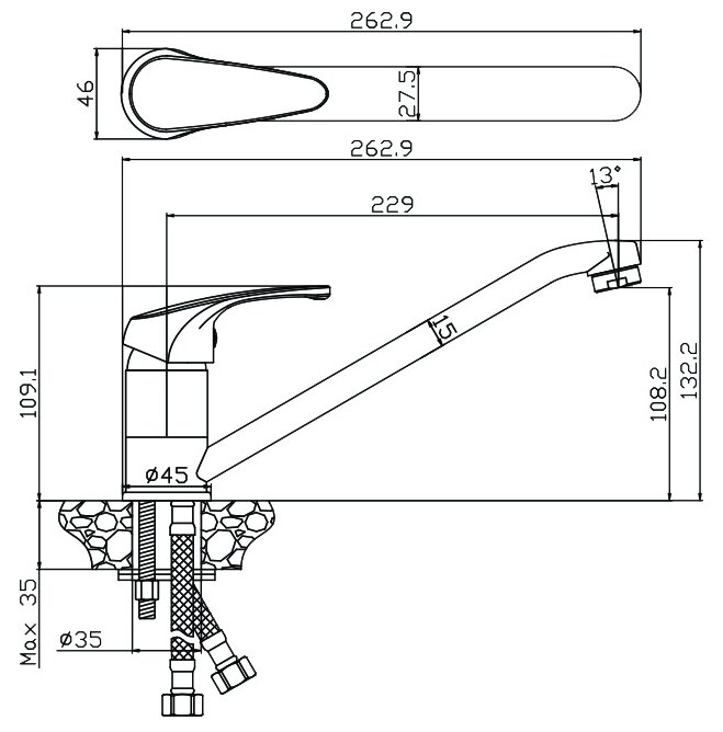 | ВКоробке | Смеситель - 1 шт. Комплект подводки - 1 шт. Набор креплений - 1 шт. Инструкция - 1 шт. |