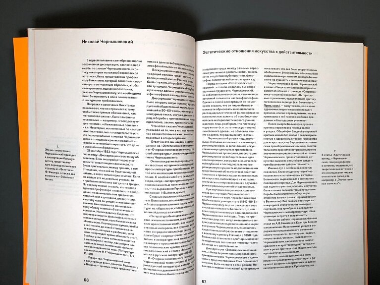 Поэт и филолог Павел Арсеньев, написавший предисловие и послесловие к новому изданию «Эстетических отношений…», утверждает, что Чернышевского можно назвать первым русскоязычным медиакритиком, и подключает новейший критический аппарат, доказывая непреходящую актуальность текста, оставшегося практически незамеченным при жизни автора.