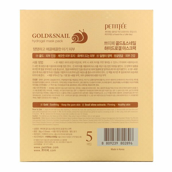 PETITFEE Маска гидрогелевая с коллоидным золотом и муцином улитки для лица / Hydrogel Mask Pack 5 шт (802896)