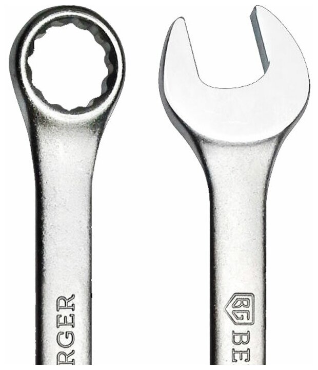 Ключ комбинированный 8мм Berger BG , полностью выполнен из инструментальной хромванадиевой сталиотличаются высокой прочностью, износостойкостью и качественной защитой от появления ржавчины. Изделия подходят для профессионального применения в ремонтно-сборочных цехах, станциях технического обслуживания автомобилей, сервисных центрах по обслуживанию различной техники и т. д.Преимущества Работает с болтом и гайкой: M5 DIN 3113 Сталь: Cr-V Твердость: 44-49 HRC Угол изгиба 15°, угол наклона рожков 15° С антикоррозийным покрытием «Satin» (матовый хром) Двухсторонняя маркировка ключа облегчает идентификацию