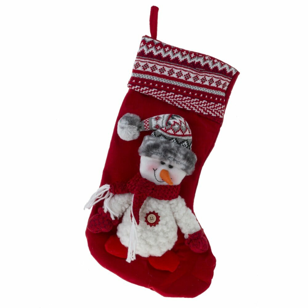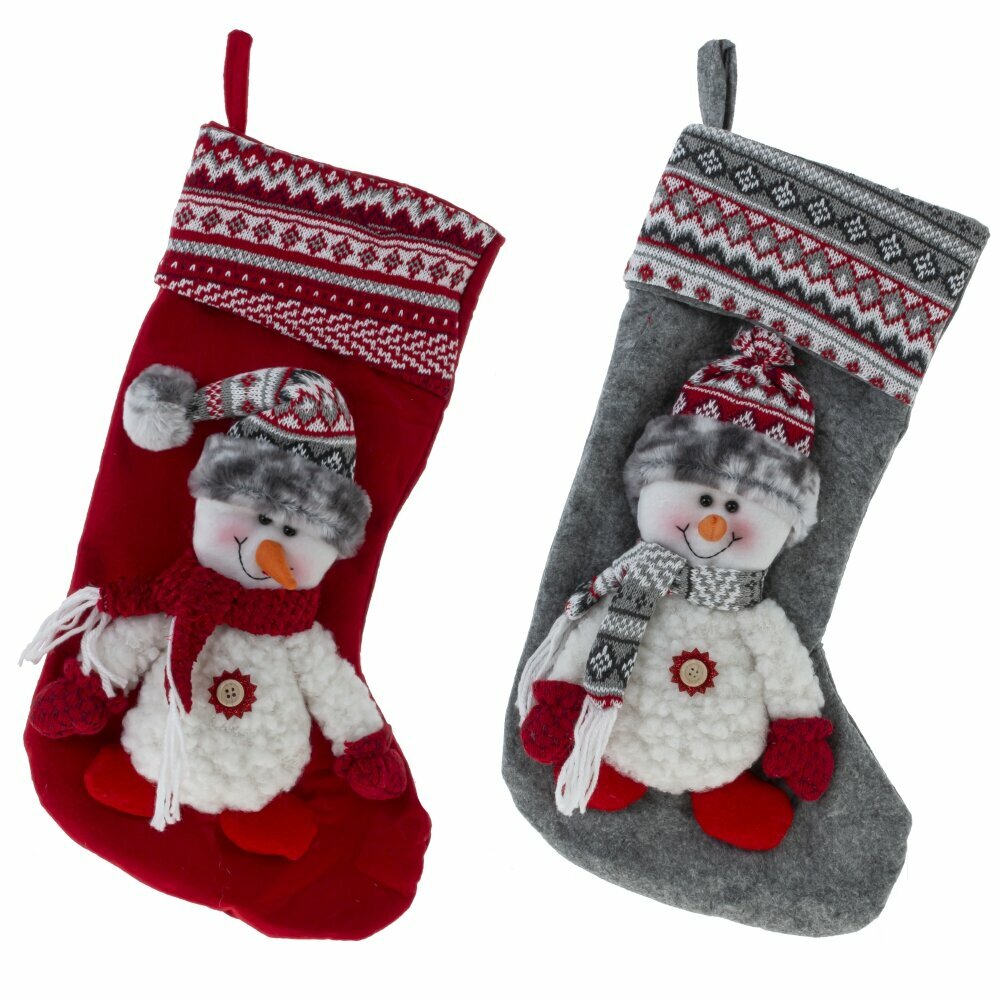 Чудесный яркий носок с обаятельным снеговиком будет создавать атмосферу уюта и зимней сказки в вашем доме, а так же послужит замечательной упаковкой для сувениров и сладостей. Изделие представлено в двух вариантах.
