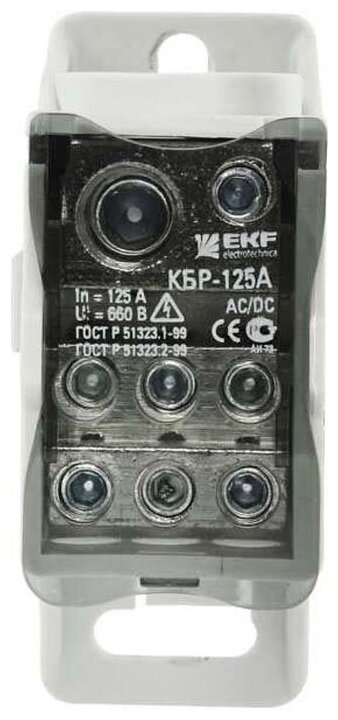 Блок распределительный кросс крепеж на панель и DIN КБР-80А EKF Блок распределительный КБР EKF PROxima предназначен для обеспечения удобного распределения питания в шкафах и используется в качестве переходного клеммника для подключения кабельной жилы большего сечения к нескольким проводникам меньшего сечения, а также для организации главной заземляющей шины (ГЗШ). ГОСТ Р 50030.7.2002