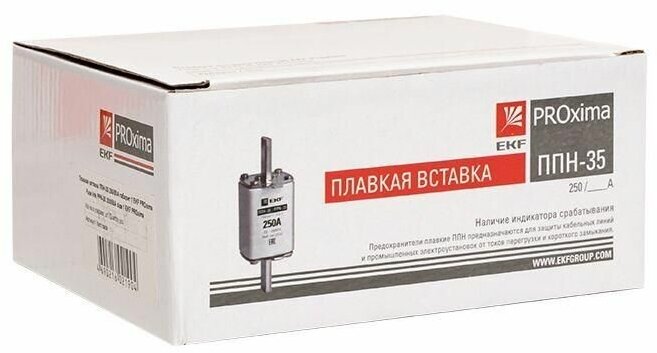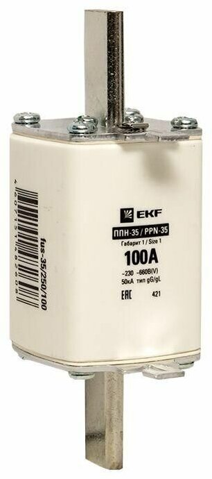 Вставка плавкая ППН-35 250/100А габарит NT1 PROxima EKF • назначение Вставка плавкая предназначена для защиты, при перегрузках и коротких замыканиях, силовых и вспомогательных цепей электроустановок промышленных предприятий, общественных и жилых зданий. • Область применения Вставка плавкая устанавливается в комплектные устройства. • Принцип действия Принцип действия плавкой вставки заключается в том, что при прохождении по цепи тока, по своим значениям превышающего номинальный ток, происходит чрезмерный перегрев тонкого проводника и он перегорает, тем самым разрывая цепь. • Дополнительные принадлежности ИЛИ аксессуары