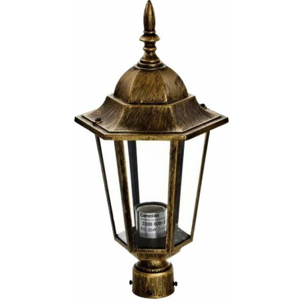 Уличный светильник Camelion 4103 C02. Даст комфортный свет на участке. Размеры 17.5x17.5x34.5 cm. Параметры пылевлагозащиты IP — 43. Плафон металлический черного цвета, а материал/цвет арматуры металл/черный. Использует 1 лампу с цоколем E27. Страна происхождения бренда — Китай.