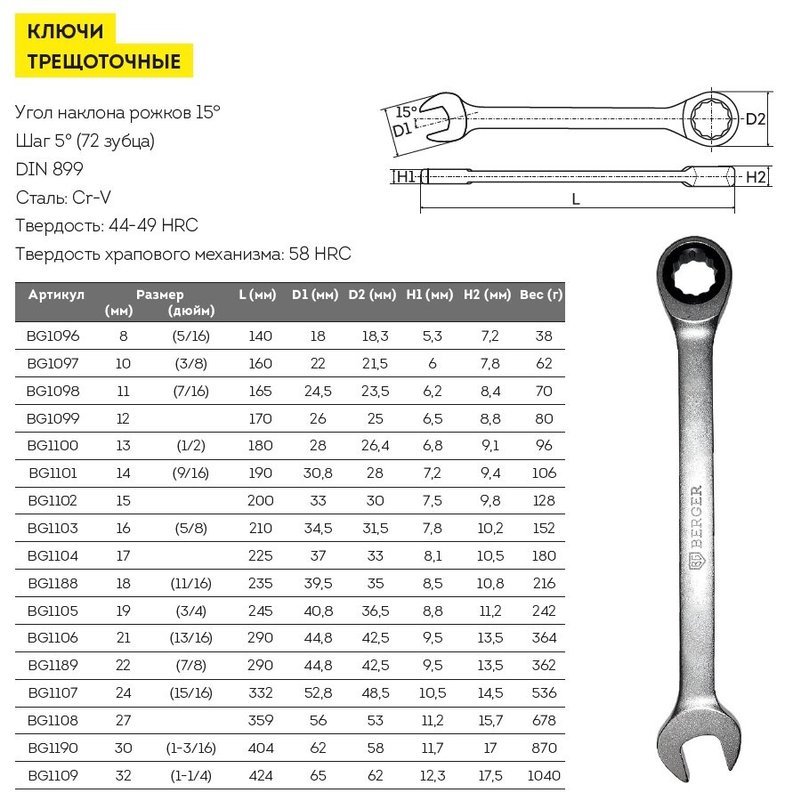 Сервис сравнения цен СкидкаГИД предлагает сравнить цены на товар «Комбинированный трещоточный ключ Berger BG Bg1109»