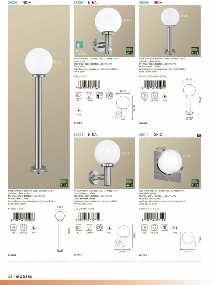 Наземный светильник уличный Nisia - продукт известной компании Eglo (Австрия). Имеет максимальную мощность 60 Вт, освещает площадь до 3 кв. м. Отлично подойдет для таких мест, как дача, сад. Впишется в интерьеры следующих стилей: модерн.