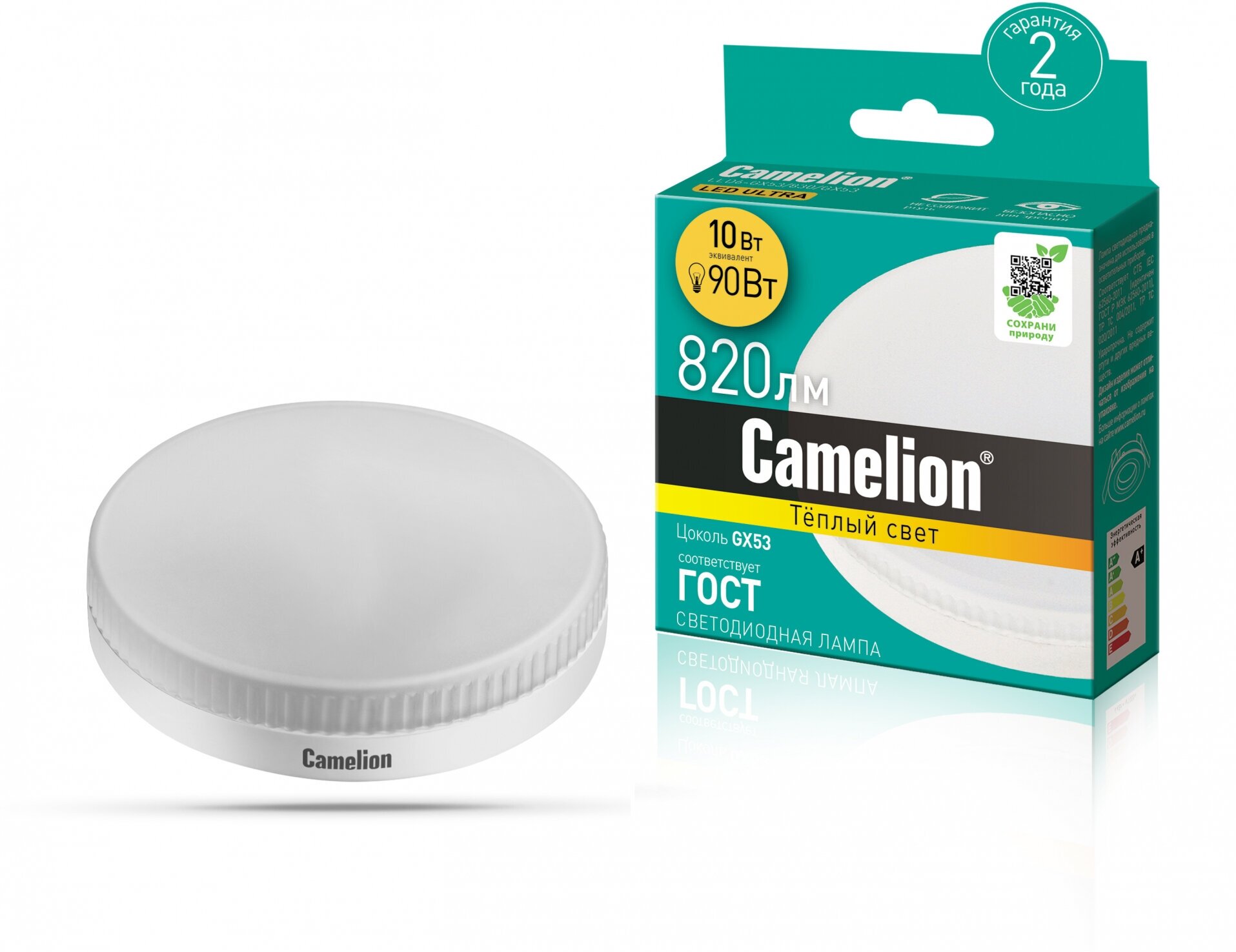 Лампы Camelion это современная альтернатива галогенным, люминесцентным и лампам накаливания в системах общего освещения. Экологически безопасны и не требуют утилизации - не содержат ртути и других вредных веществ. Отсутствие инфракрасного (теплового) излучения светодиодов обеспечивает пожаробезопасность. Отсутствие нити накаливания и хрупкой стеклянной трубки обеспечивают высокую вибра и ударопрочность. Широкий температурный диапазон эксплуатации (от -30 C до +40 C) делает возможным использование ламп для наружного освещения. Мгновенное включение и выход на полную яркость. Могут применяться как для основного, так и для акцентного освещения. Экономия электроэнергии до 90% без ущерба для освещенности и качества света по сравнению с обычными лампами накаливания. Отсутствие низкочастотных пульсаций, негативно влияющих на зрение. Отсутствие ультрафиолетового излучения, привлекающего насекомых.
