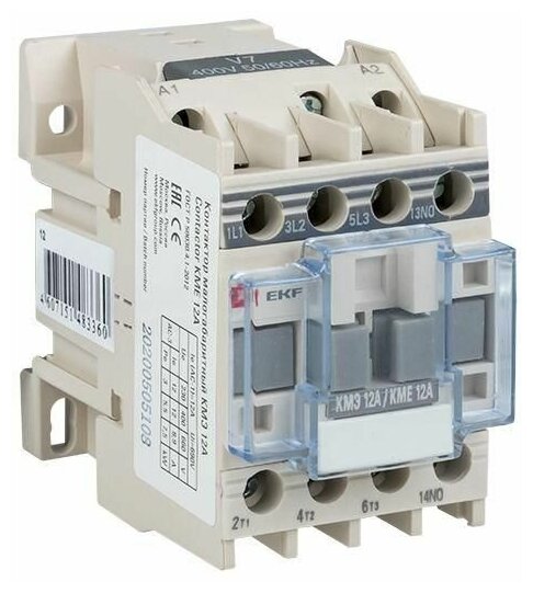 **Контактор EKF КМЭ 1NO** подходит для работы с большими нагрузками, которые происходят при переменном или постоянном токе. Используется для принудительного разрыва цепей тока сразу в нескольких точках. Соответствует типу дифференциального выключателя AC. Габаритные размеры: глубина — 80 мм, высота — 74 мм, ширина — 45 мм.