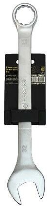 Комбинированные ключи 32мм Berger BG - профессиональные ручные инструменты для работы с крупными болтами и гайками. Ключи очень прочны, надежны и долговечны в эксплуатации. Отличаются превосходной устойчивостью к износу и коррозии.Преимущества Материал Berger BG : прочная и качественная хром-ванадиевая сталь Матовое антикоррозийное хромовое покрытие "сатин" Накидная часть изогнута под углом 15° для более комфортной работы в труднодоступных местах Двенадцатигранный рабочий профиль минимизирует риск повреждения граней шестигранного крепежа Двухсторонняя маркировка ключа облегчает идентификацию