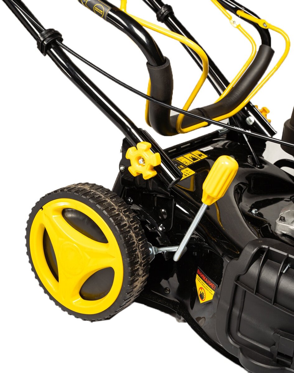 - Более широкий набор дополнительных опций, таких как боковой выброс, мульчирование или самоходность (привод на колёса).