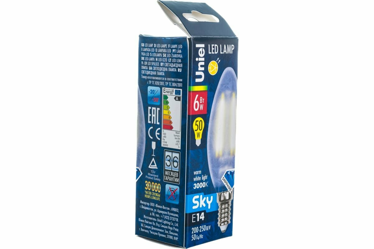 Лампа светодиодная Uniel Led-c37-6w/nw/e14/fr/dim plp01wh