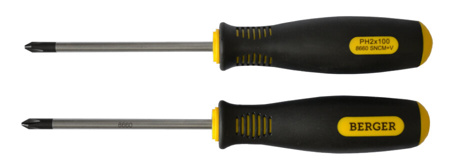 Крестовая отвертка PH0*100мм Berger BG представляет собой ручной инструмент для сборки, ремонта, демонтажа конструкций и механизмов, где используются мелкие винты с крестовым рабочим профилем. Изделие оснащено эргономичной рукояткой с противоскользящими свойствами, а также высокопрочным стальным жалом.