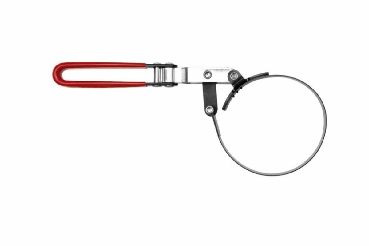 Съёмник масляных фильтров 73-85 мм.Съемник фильтров стальная лента 73-85 мм используется для замены фильтрующих элементов. Инструмент разработан на основе ленточной технологии. Изделие удобно в эксплуатации, позволяет осуществлять демонтажные работы в труднодоступных местах за счет поворотной конструкции рукоятки (на 180 градусов).