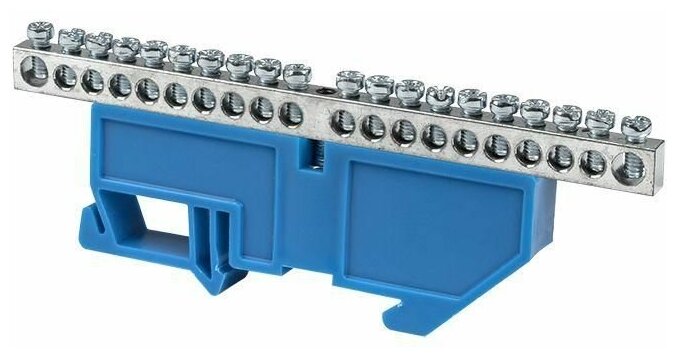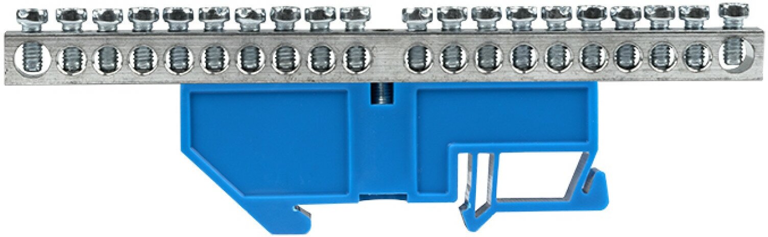 Шина на DIN рейку N 170.63.20. ЭКФ – аксессуар щитового оборудования с креплением на дин-рейке. Габариты: 132 х 9 х 6 мм. Изготовлен из латуни. Защищен никелевым покрытием. 20 отверстий диаметром 4,5 мм. Предусмотрено подключение 20 проводников.
