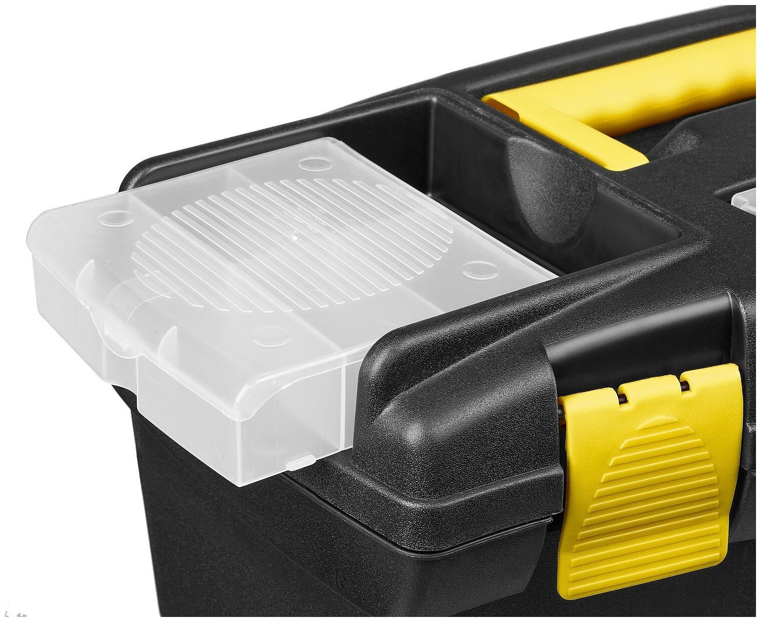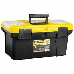 | Прочие особенности и свойства | Ящик "STANDARD" пластиковый с органайзерами STAYER 38105-13_z*02 - удобный помощник в хранении и транспортировки ручных инструментов и принадлежностей. Благодаря прочному материалу корпус устойчив к нагрузкам. Крышка плотно и крепко закрывается с помощью петлей. Изделие имеет встроенный органайзер для комфортного хранения мелких принадлежностей. |