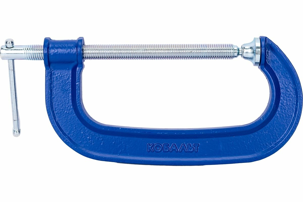 Струбцина G-образная 150мм КОБАЛЬТ , предназначена для временной фиксации с большим усилием различных деталей и заготовок между собой или к верстаку для дальнейшей обработки, сварки или склейки. Толщина зажимаемых заготовок до 150мм, глубина захвата 71мм, усилие сжатия 1100кгс.