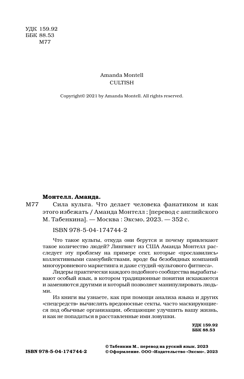Сила культа. Что делает человека фанатиком и как этого избежать (Монтелл Аманда); ООО "Издательство "Эксмо", 2022