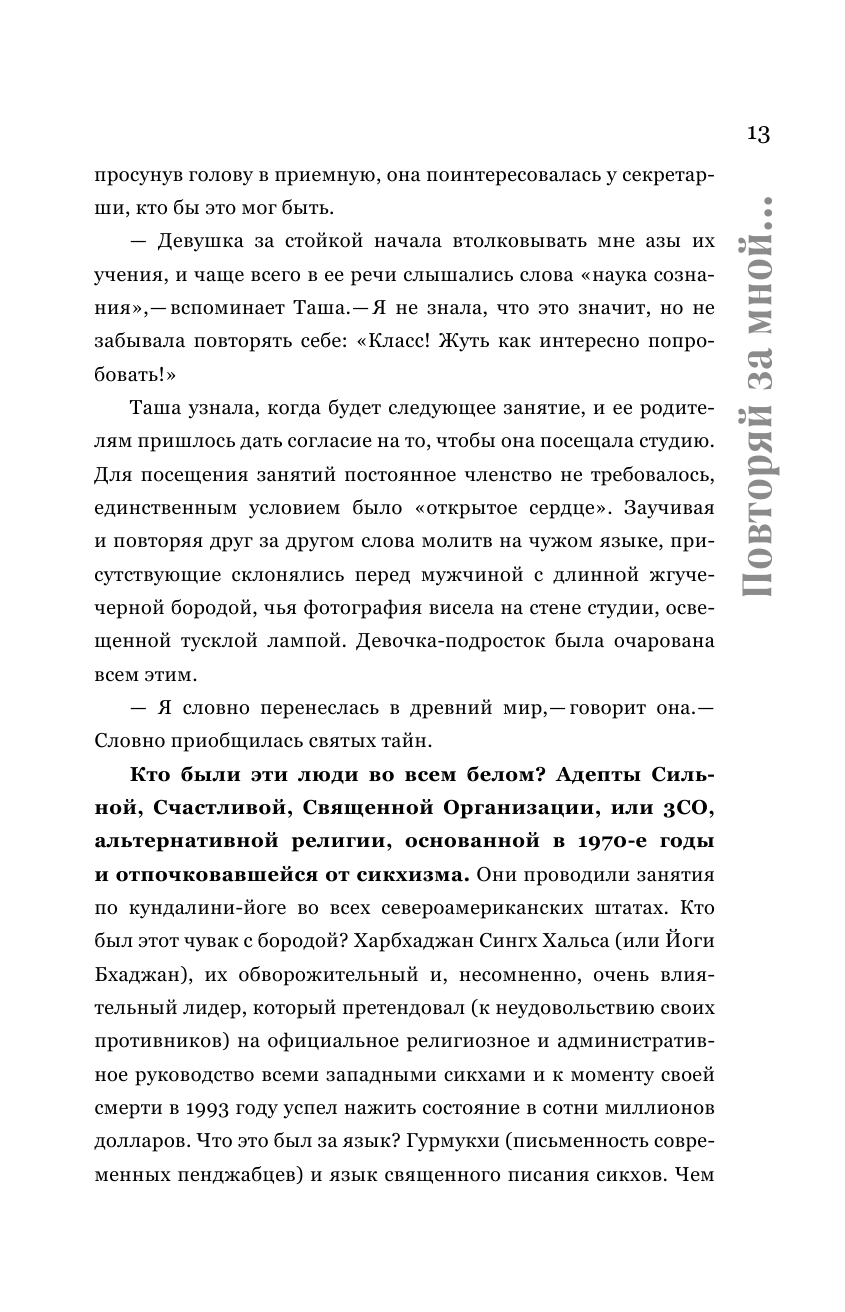 Также впечатление, что большинство опрошенных автором жертв сект - состоятельные девушки из Лос-Анджелеса) С одной стороны, показано, что даже образованные и обеспеченные люди подвержены этому влиянию, плюс, целью книги является именно анализ языка, а не других причин попадания людей в секты. С другой стороны - одно без другого кажется неполным, и информацию о том, идут ли в секты люди небогатые и необразованные, а также интервью с ними, тоже было бы интересно прочитать.