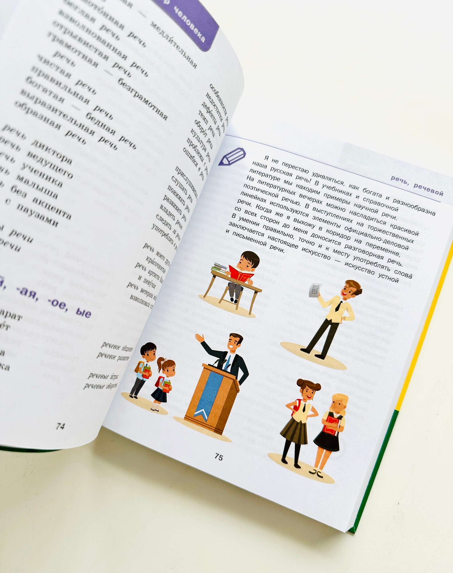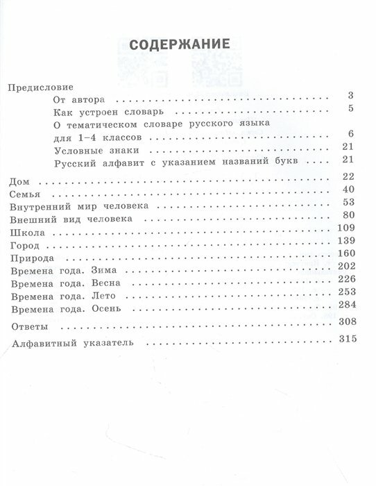 Словарь содержит более 250 словарных статей. В каждой статье приведены слова, сочетания слов и речевые конструкции, которые помогут ребёнку ясно и точно выразить свои мысли, чтобы раскрыть тему сочинения, составить устное или письменное сообщение. С помощью словаря легко подобрать нужные слова, например, для описания внешности человека, репродукций картин художников, пейзажа за окном и т. д.