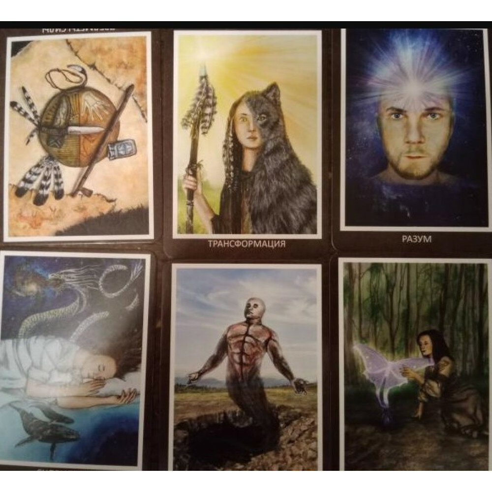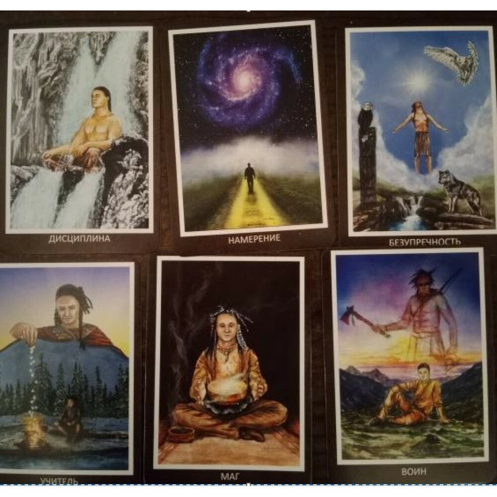 Немного про задумку этих карт, колода называется «поиск внутренней силы», но, как оказалось это не просто про внутреннюю силу, а некоторые идеи и темы основаны на книгах Кастенеды и учении магов – толтеков древней Мексики . Мне эта тема очень откликнулась, потому что авторы подошли с психологической стороны (не магической) работы с внутренней силой и объясняют работу над собой с помощью этих карт, доступным, понятным языком, даже если ты не специалист в этих вопросах. Было интересно изучать методичку, узнала много нового, она меня даже без карт натолкнула на определенные раздумья на тему саморазвития.
