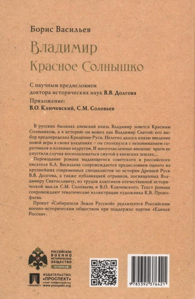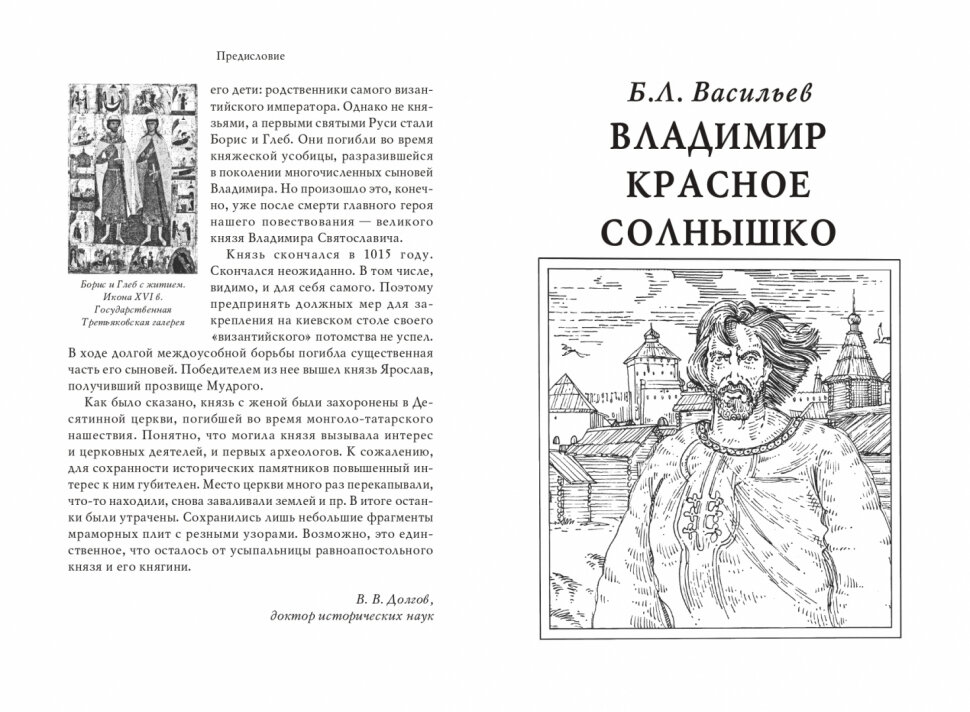 Переиздание романа выдающегося советского и российского писателя Б.Л. Васильева сопровождается предисловием одного из крупнейших современных специалистов по истории Древней Руси В.В. Долгова, а также публикацией отрывков, посвященных Владимиру Святославичу, из трудов классиков отечественной исторической мысли С.М. Соловьева и В.О. Ключевского. Текст романа сопровождают тематические иллюстрации художника К.В. Прокофьева.