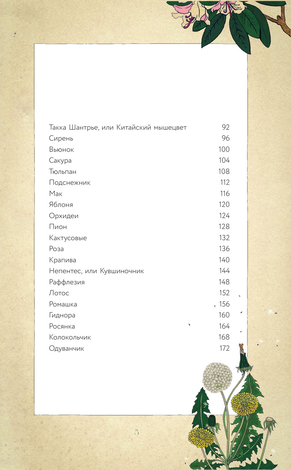 Книга поражает воображение разносторонним взглядом на цветочный мир. автор рассказывает о нескольких цветах ( из 42 историй, о 8 точно), которые мало известные и притом невероятно красивые и самобытные.