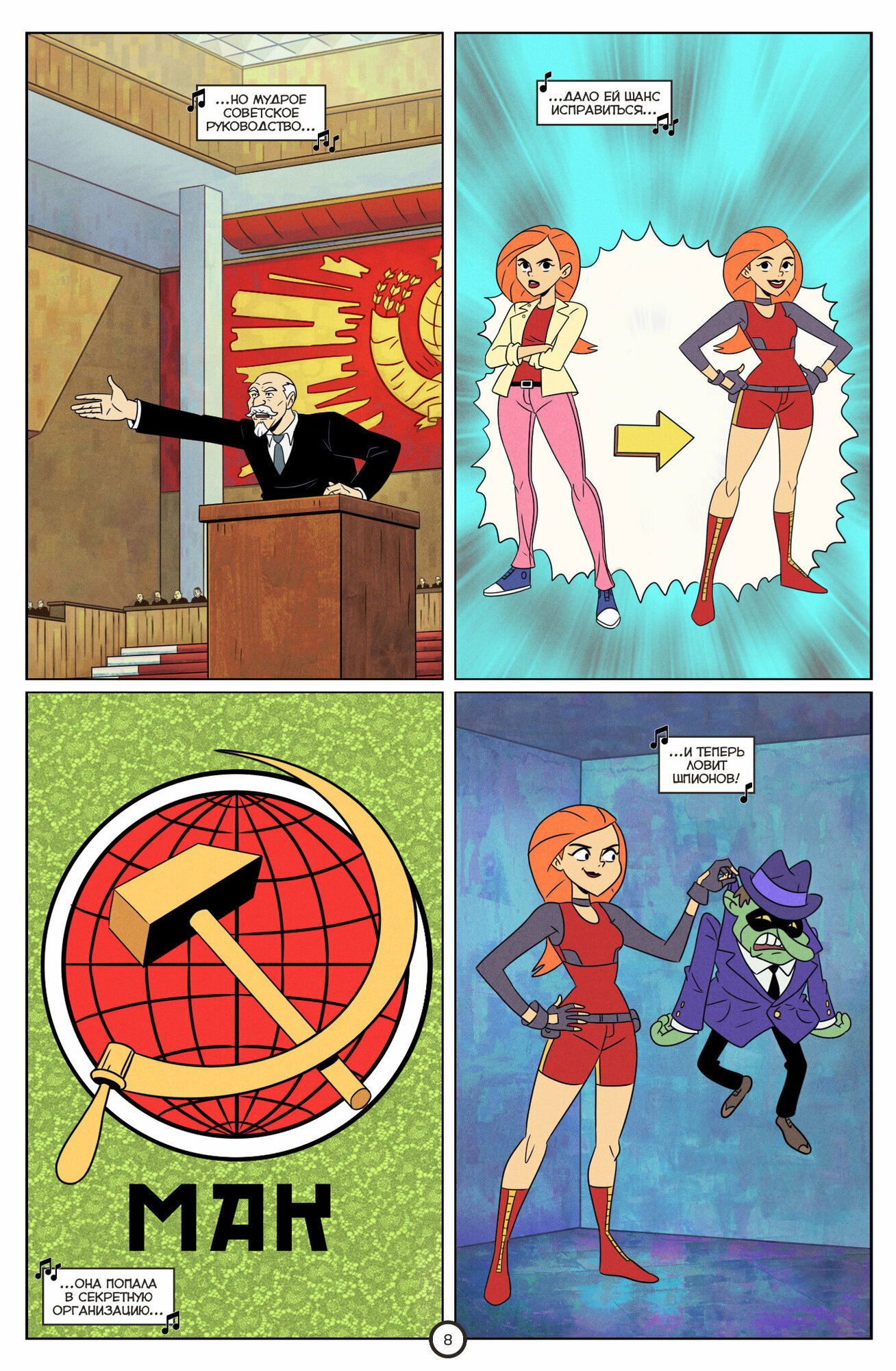 Итак, общие впечатления от комикса! Милый, стильный, сумасшедший, и по-детски наивный. Художественным стилем напоминает мультфильмы начала 2000-х годов, особенно «Kim Possible» -