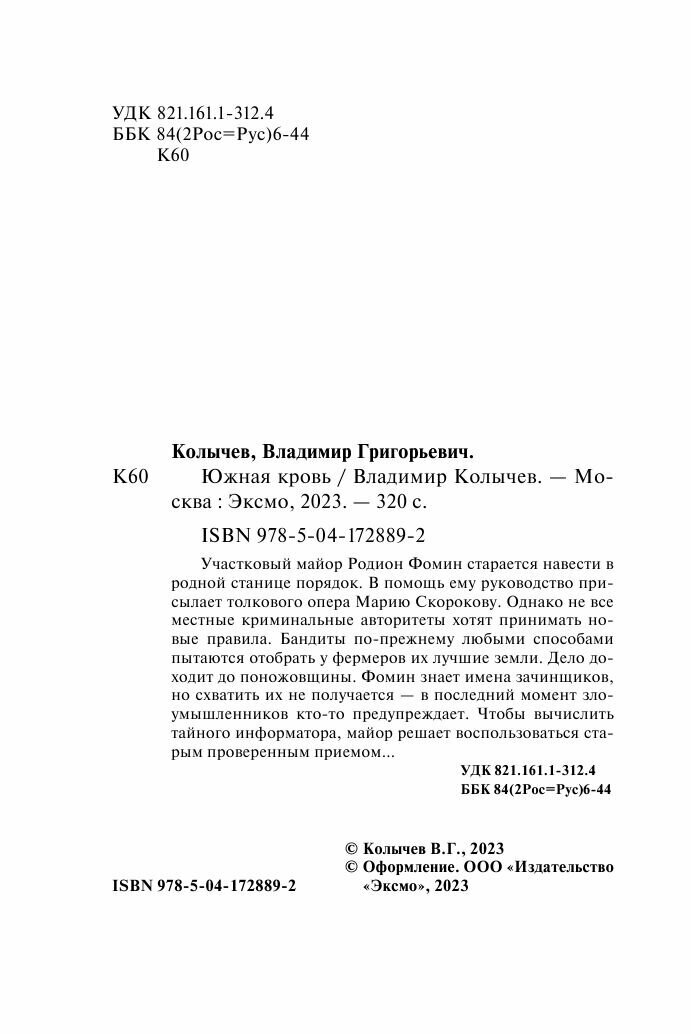 Сервис сравнения цен СкидкаГИД предлагает сравнить цены на товар «Книга: Южная кровь (Колычев Владимир Григорьевич); Эксмо, Редакция 1, 2023»
