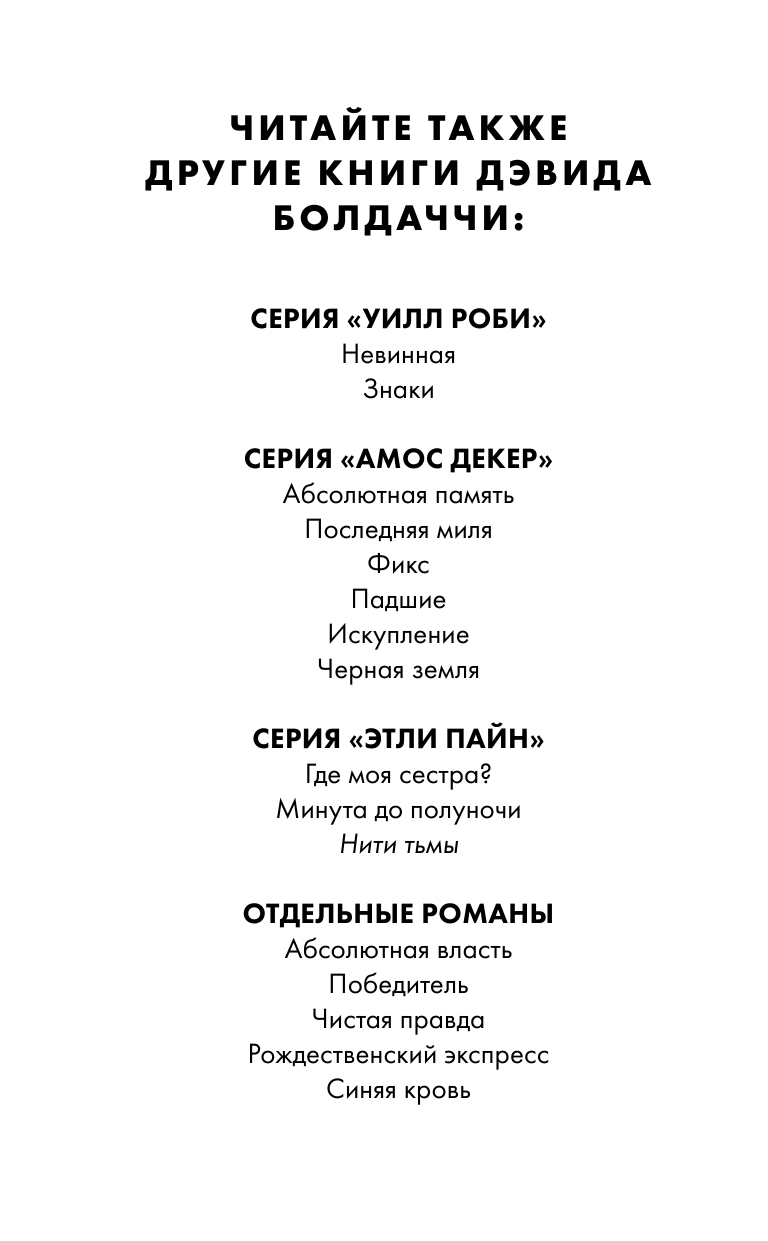 | Серия | Дэвид Болдаччи. Гигант мирового детектива |