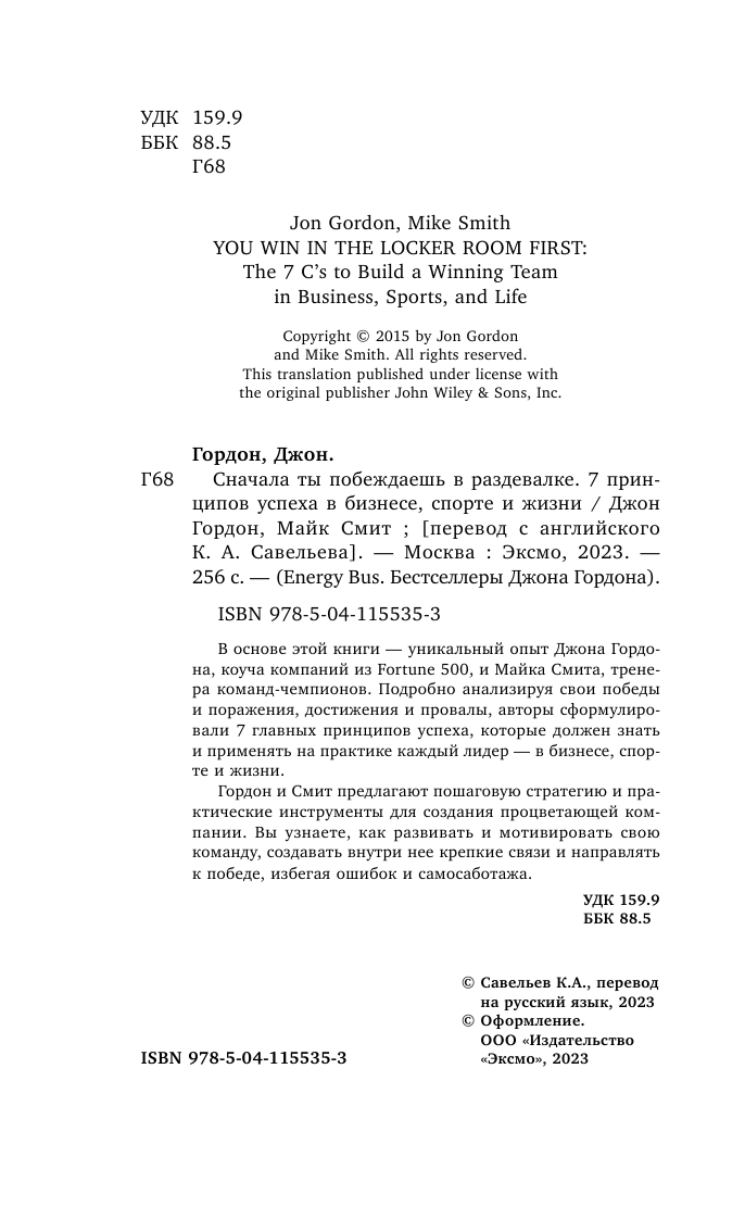 Сначала ты побеждаешь в раздевалке. 7 принципов успеха в бизнесе спорте и жизни (Гордон Джон, Смит Майк); Эксмо, 2023