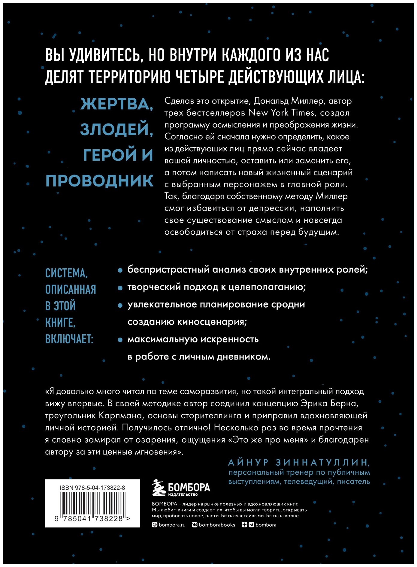 Удивитесь, но внутри каждого из нас делят территорию четыре действующих лица: жертва, злодей, герой и проводник. Сделав это открытие, Дональд Миллер, автор 3-х бестселлеров New York Times, создал программу осмысления и преображения жизни. Согласно ей сначала нужно определить, какое из действующих лиц прямо сейчас владеет вашей личностью, оставить или заменить его, а потом написать новый жизненный сценарий с выбранным персонажем в главной роли. Так благодаря собственному методу Миллер смог избавиться от депрессии, наполнить свое существование смыслом и навсегда освободиться от страха перед будущим.
