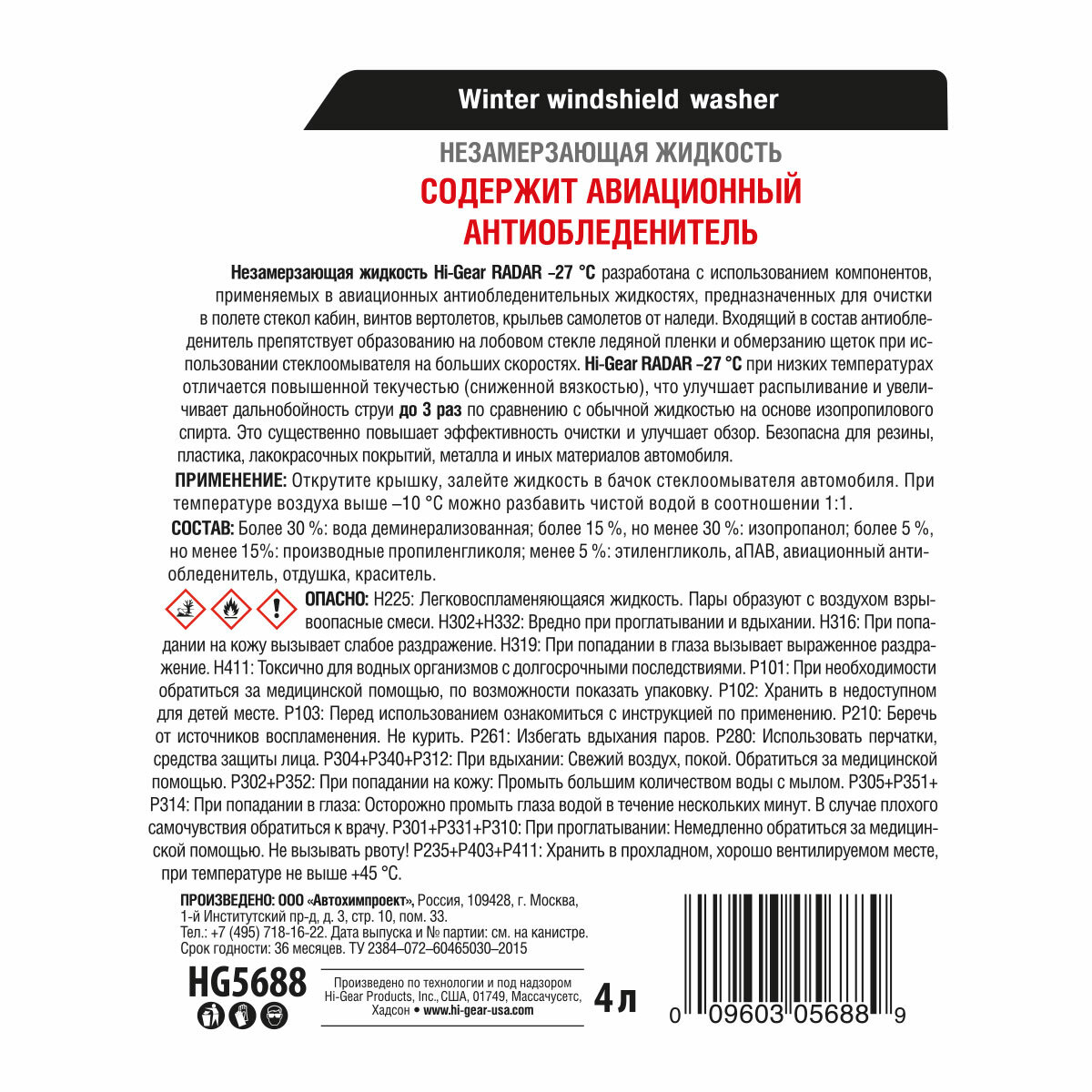 автоочиститель стекол HI-GEAR Radar 4л -27С (HG5688)