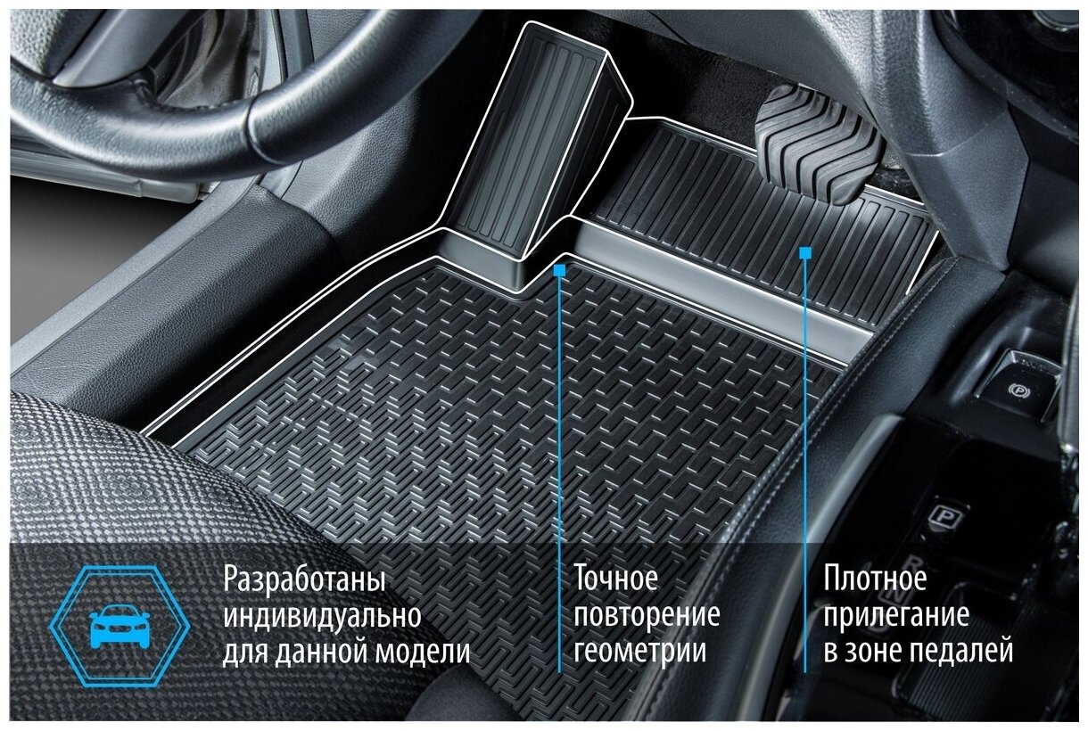 Комплектация крепежа:Фиксаторы к коврикам: передний левый - 2Прочные и долговечные ковры в салон автомобиля, изготовлены из высококачественного и экологичного сырья, полностью повторяют геометрию салона вашего автомобиля.Основными преимуществами продукта являются:- Надежная система крепления, позволяющая закрепить коврик на штатные элементы фиксации, в результате чего отсутствует эффект скольжения по салону автомобиля.- Высокая стойкость поверхности к стиранию.- Специализированный рисунок и высокий борт, препятствующие распространению грязи и жидкости по поверхности ковра.- Высота борта варьируется от 17 до 27 мм по периметру ковриков.- Перемычка задних ковров в комплекте предотвращает загрязнение тоннеля карданного вала.- Произведены из первичных материалов, в результате чего отсутствует неприятный запах в салоне автомобиля.- Высокая эластичность, можно беспрепятственно эксплуатировать при температуре от -50 до +60 градусов по Цельсию.Уважаемые клиенты! Обращаем ваше внимание, что коврики имеет форму соответствующую модели данного автомобиля. Фото служит для визуального восприятия товара.