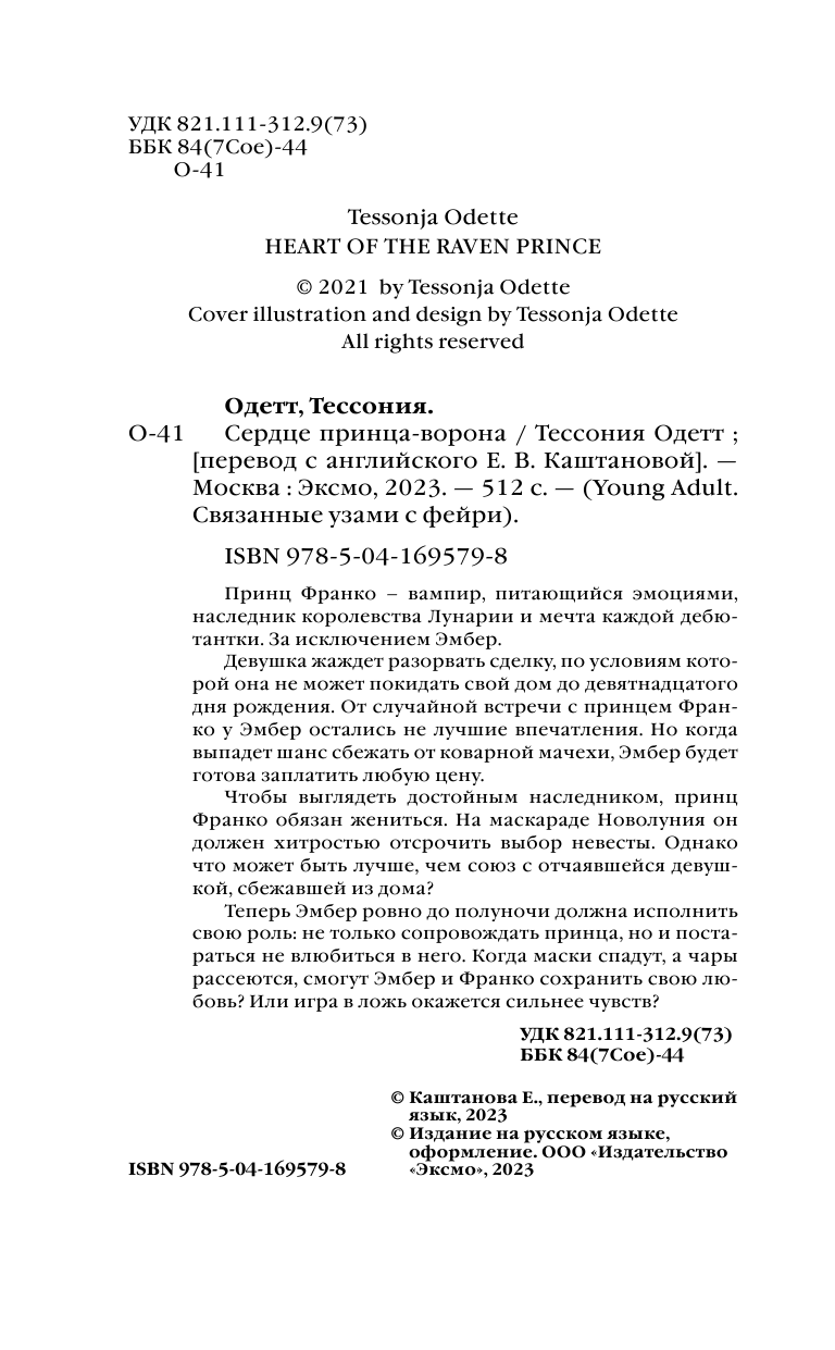 Книга: Сердце принца-ворона (Одетт Тессония); ООО "Издательство "Эксмо", 2023