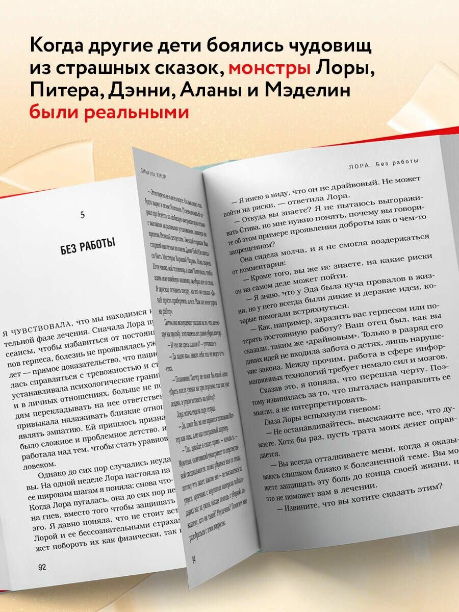 Лора, Питер, Дэнни, Алана и Мэделин в раннем детстве узнали, что такое настоящий ад. Когда другие дети боялись чудовищ из страшных сказок, их монстры были реальными. Отец, который поклоняется Теду Банди и дает тебе наркотики вместо еды. Священник, зовущий тебя в укромное место совсем не для молитвы. Мать, от которой каждый день слышишь: "Доброе утро, монстр!"