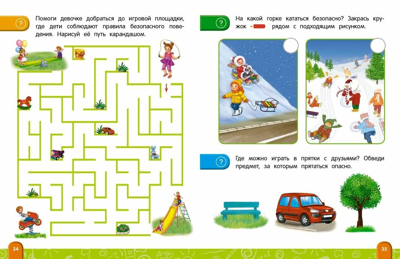 Книжка замечательная. Очень доступным и простым языком излагаются правила безопасности для детей, которые нужно соблюдать дома, на улице, в иных общественных местах. Материал представлен структурированно и логично. Сначала излагается несколько основных правил по определенной теме, которые ребенок должен запомнить, затем идет небольшой рассказ, в котором излагается история, в которой дети вели себя небезопасно. После истории написаны вопросы для беседы с ребенком. Это позволяет закрепить новый материал. После каждой темы идут задания, которые ребенок должен выполнить (раскрасить, обвести, указать нужные предметы или знаки). Сама по себе книжка красочная. Я думаю, что книжка идеально подойдет для дошколят и, возможно, для ребятишек младших (1-2) классов. Планирую приобрести еще один экземпляр на подарок.