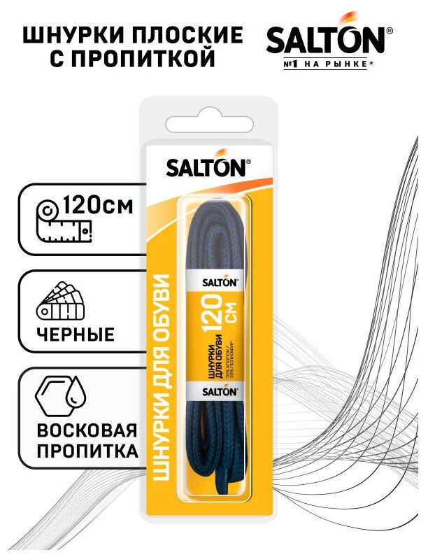 шнурки SALTON 120см с пропиткой плоские черные 54/04 (размер: 37)