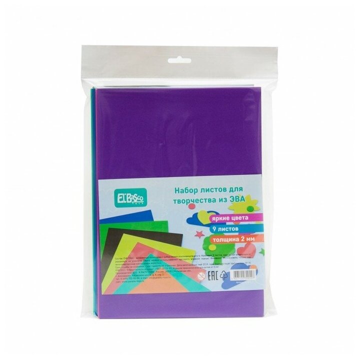 El'BascoToys Набор листов для творчества из ЭВА поможет оформлять поделки конверты, делать забавные открытки Особенности: При помощи обычного канцелярского клея, ножниц можно создавать удивительные объемные аппликации и композиции В комплекте: 6 листов + декор-лист, толщина листа 2 мм.