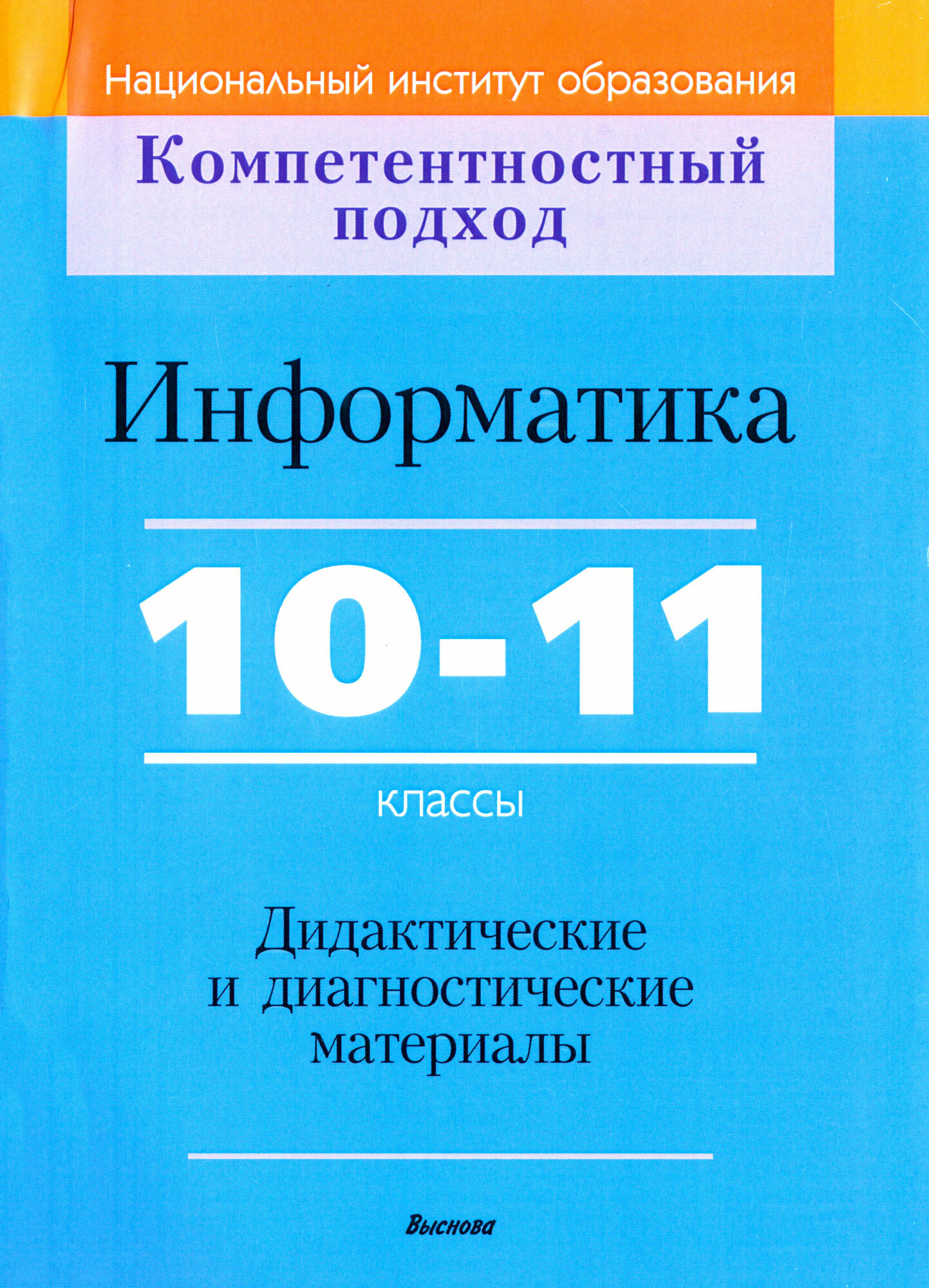 Пособие содержит дидактические и диагностические материалы по учебному предмету "Информатика", а также методические рекомендации по их применению. Предназначено для учителей информатики, работающих в 10-11 классах учреждений общего среднего образования с белорусским и русским языками обучения, при подготовке к занятиям.