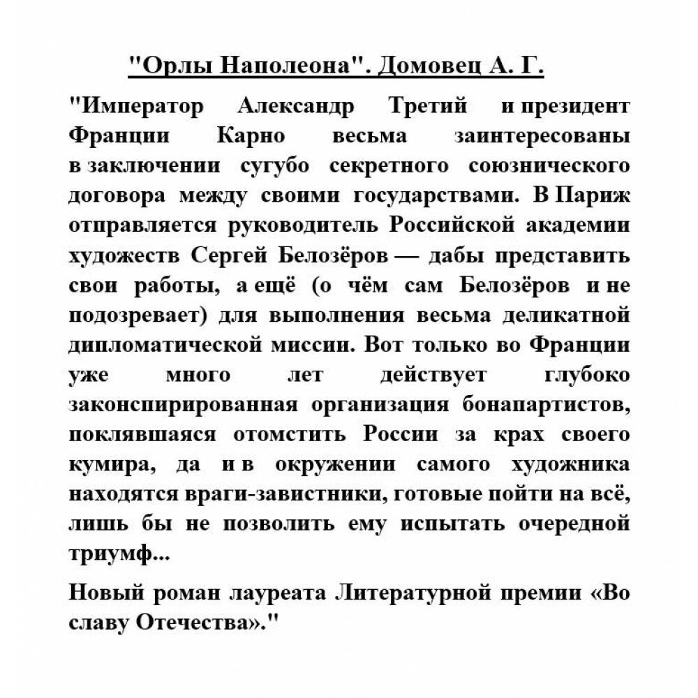 Сервис сравнения цен СкидкаГИД предлагает сравнить цены на товар «Книга: Орлы Наполеона (Домовец Александр Григорьевич); Вече, 2022»