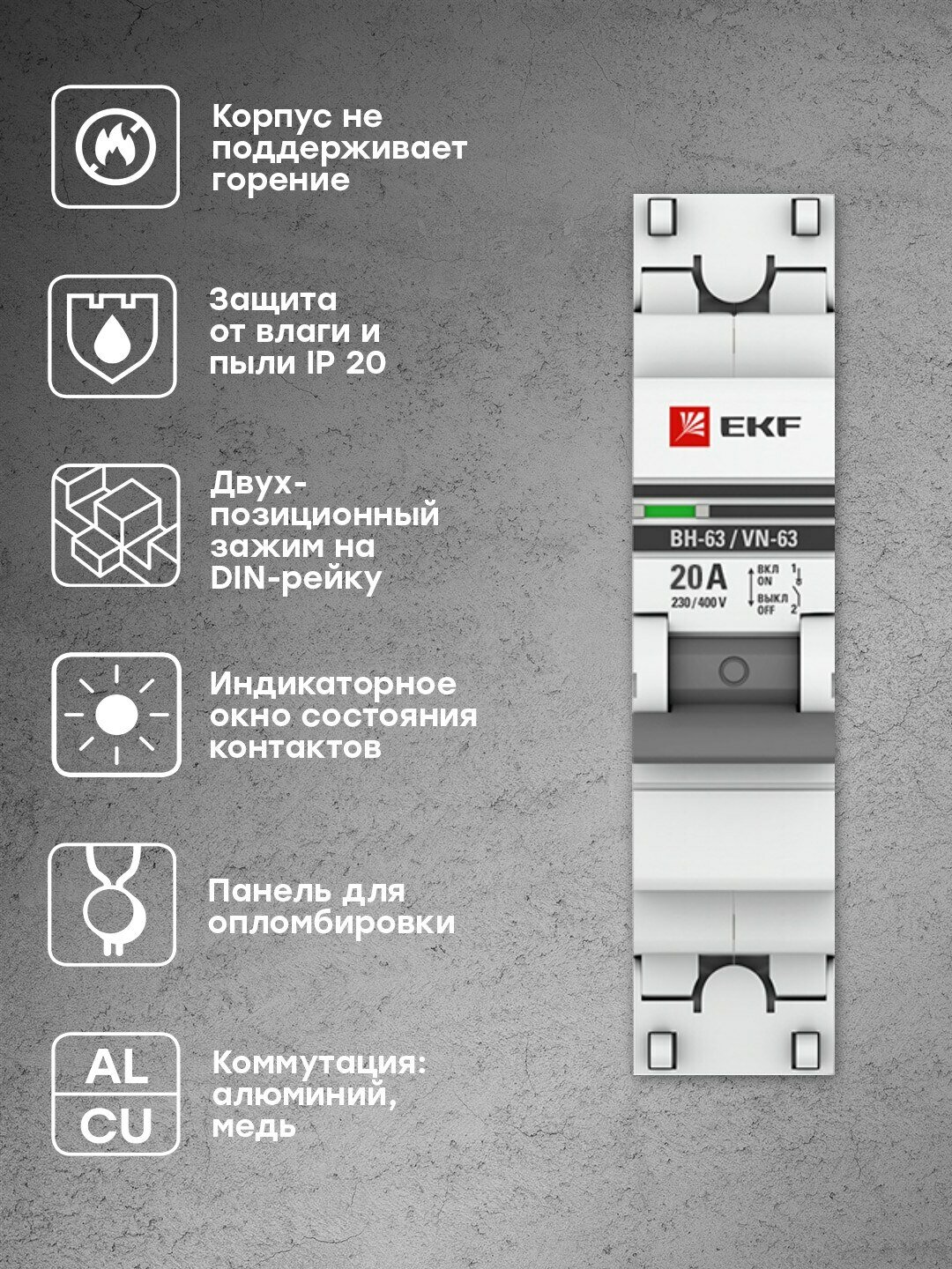 Выключатель нагрузки однополюсный ВН-63 1п 63А 230В на DIN-рейку под опломбировку EKF соответствует актуальными запросам потребителей. Доступная цена позволяет без больших материальных затрат решить насущные проблемы.EKF уделяет серьезное внимание контролю качества продукции. Жесткие требования к используемым сырью и комплектующим, применение современных технологических решений обеспечивают надежность изделий и длительный срок их эксплуатации. Вся продукция проходит процедуру сертификации для подтверждения безопасности и соответствия требованиям нормативных документов и стандартов качества.