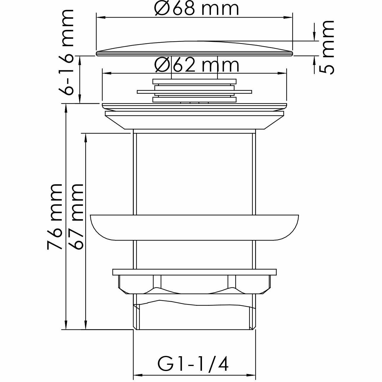 Донный клапан имеет функцию Push-up. Простым нажатием клапан закрывается, что позволяет легко набрать воду в ванну или раковину. Открывается он также легко, для этого необходимо вновь нажать на него.