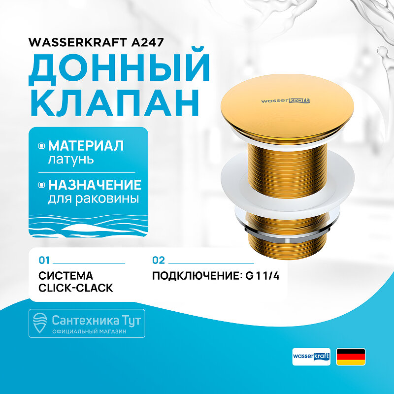 На сегодняшний день товар «Донный клапан WasserKRAFT Aisch 5500 (A247) 9070154 A247 Push-up, матовое золото» можно купить с кешбеком в 3 магазинах: Santehnika-room, Сантехника Тут, Яндекс.Маркет