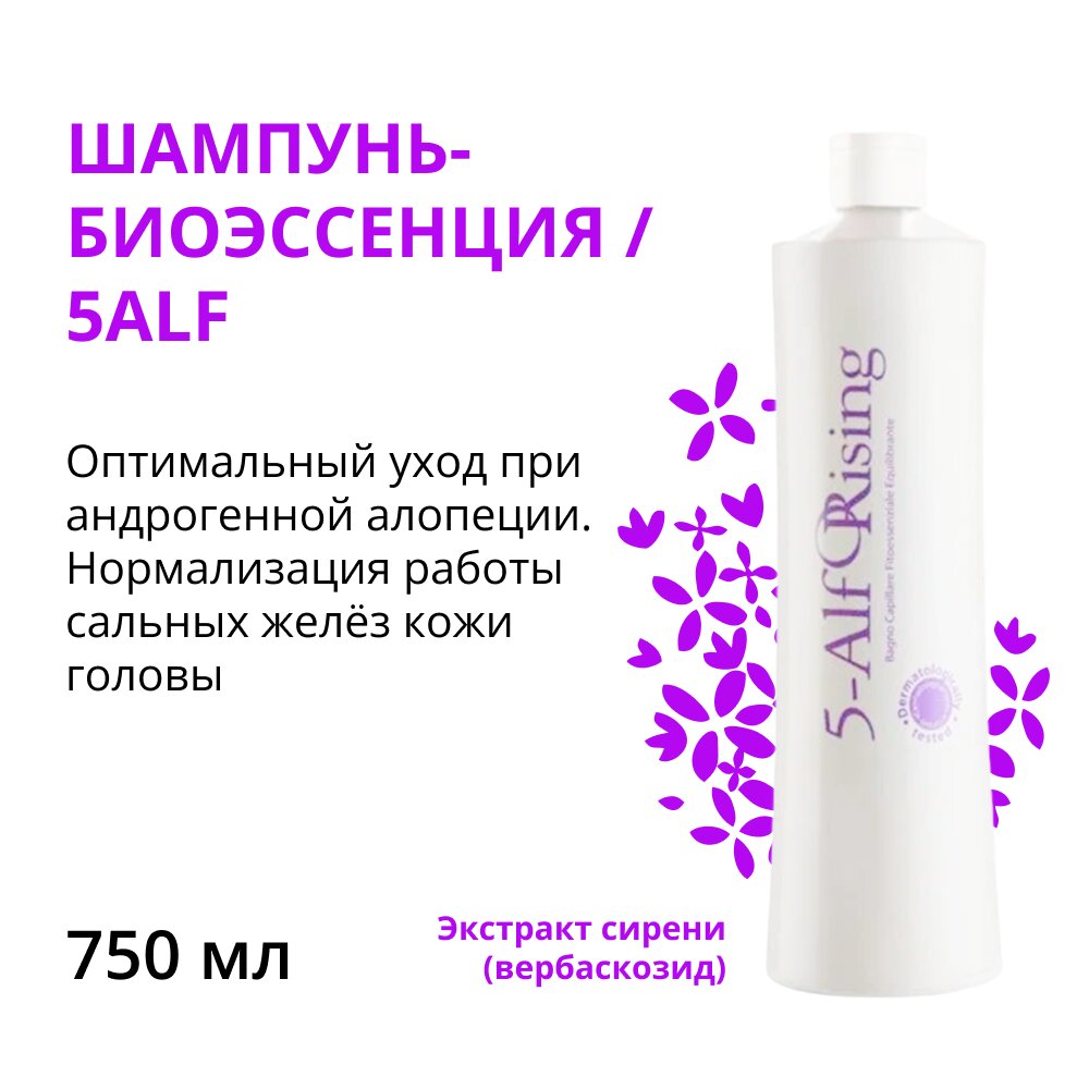 Шампунь-биоэссенция 5Alf - оптимальный уход при андрогенной алопеции. Помогает держать под контролем излишнее производство сальной секреции, связанной с действием энзима 5-альфа редуктазы.
