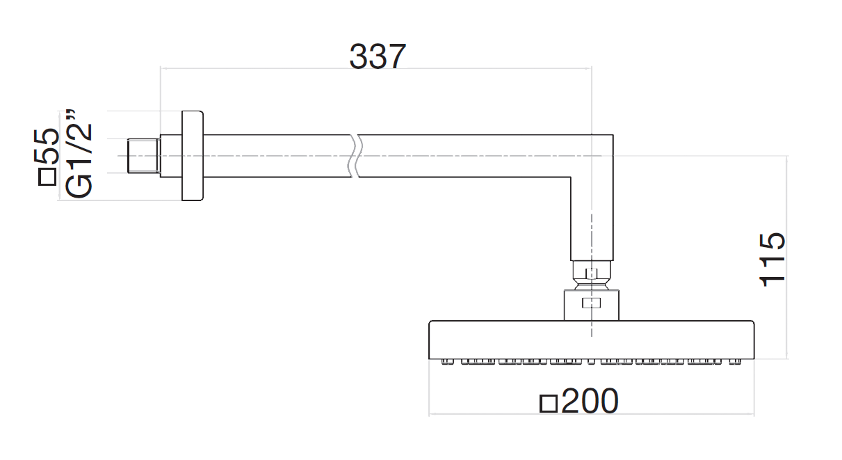 - Размер верхнего душа (ШхД): 200х200 мм.