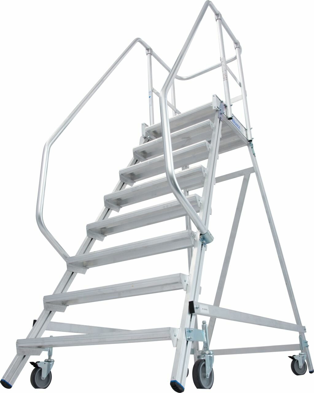 - Начиная с высоты платформы 1,00 м, с обеих сторон требуются поручни в соответствии с DIN EN 131-7. Соответственно, поручни должны заказываться как необходимые аксессуары.